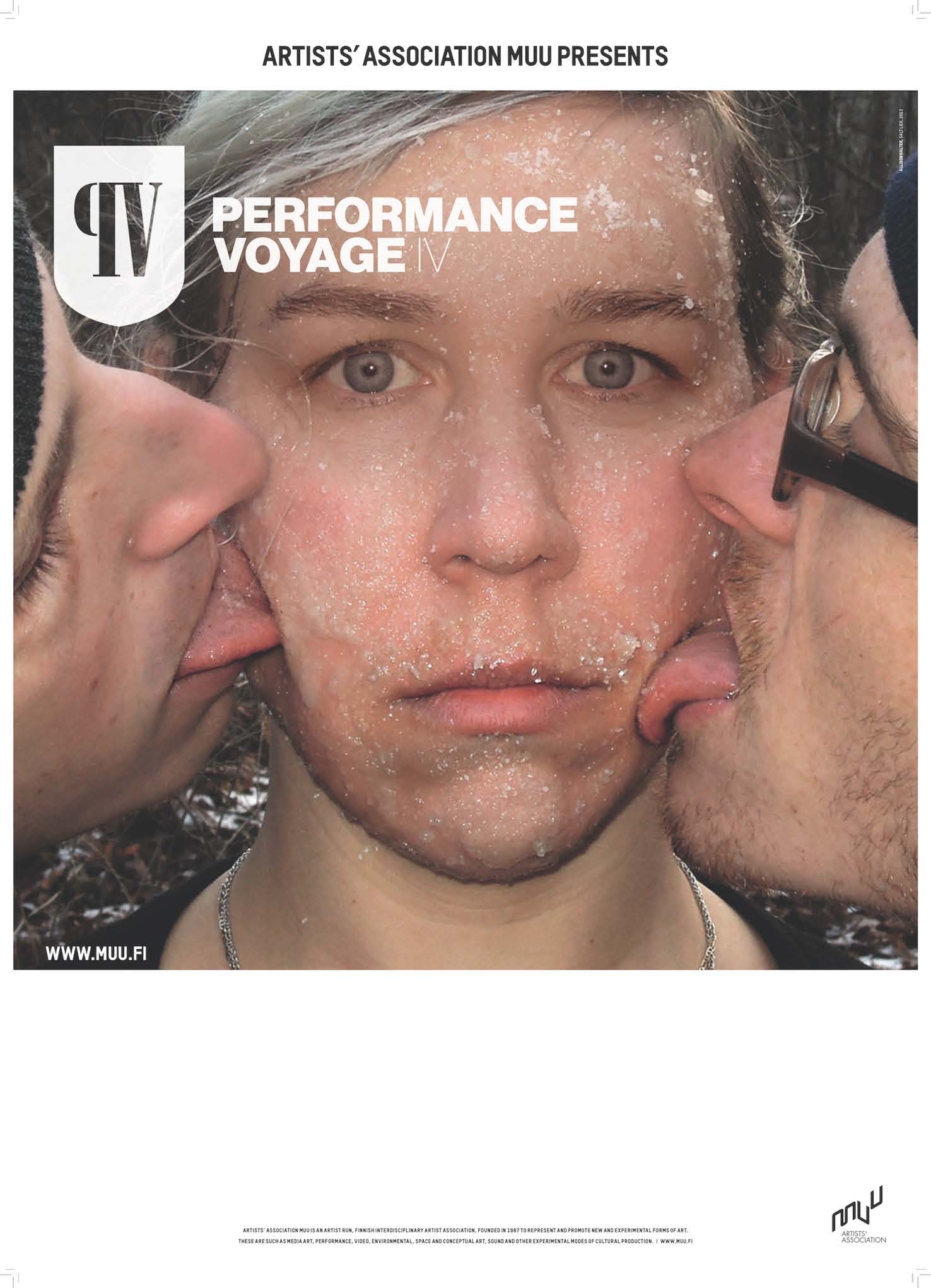 Performance Voyage 4 presents video performances by 15 artists and collectives. The compilation was selected from among work submitted in response to an open international call for artists. The theme of self-portrait offers a variety of possibilities for the artists as well as the audience: the compilation challenges the spectator to reflect their own self as well.
